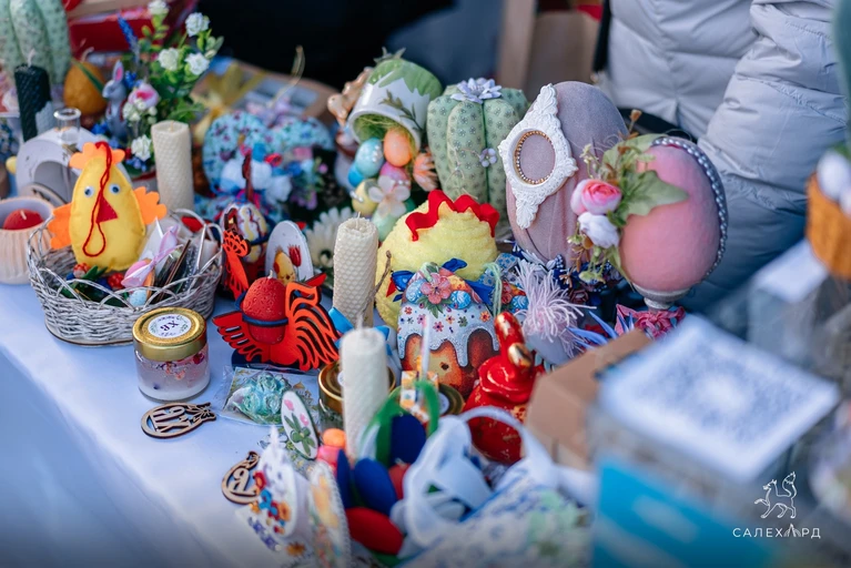 К ярмарке готовились с особым теплом и заботой: воспитанники воскресной школы изготовили большое количество свечей, шоколад и сувениры, а воспитанники православного корпуса Обдорской гимназии украсили 300 букетов верб и 23 кулича.